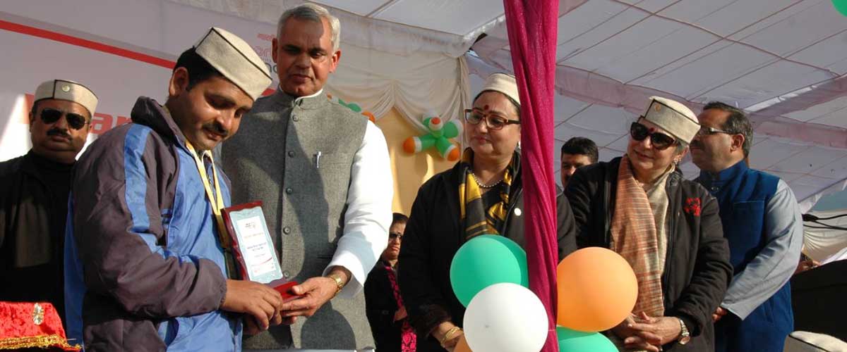 Also Sh. Vinay Sahshrabudhe Hon. Member Parliament Rajya Sabha & Smt. Naina Sahshrabudhe ( Social Worker ) Sh. Anurag Thank Hon. Member Parliament Lok Sabha & Sh. Rikhi Ram Kaundal Hon. MLA Jhandutta, Bilaspur (H.P) on the occasion of closing ceremony at Bilaspur on 7th February 2015