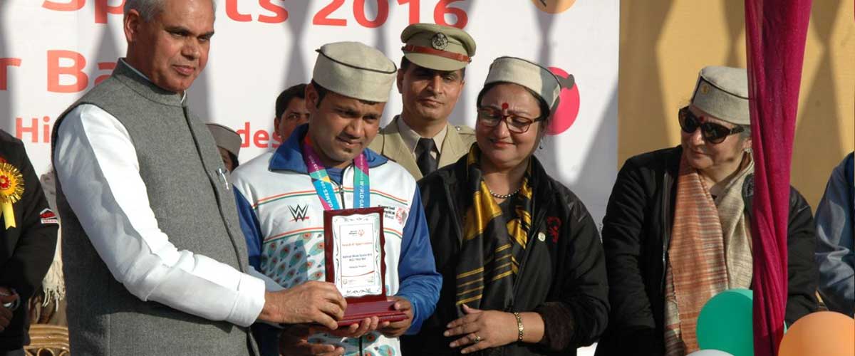 Governer Himachal Pradesh Aachrya Devrat Ji and Smt Kshma Matre Social Worker , Cord Sidbari (H.P) on the occasion of Opening Ceremony of National Coaching Camp Floorball at Bilaspur on 2nd February 2015